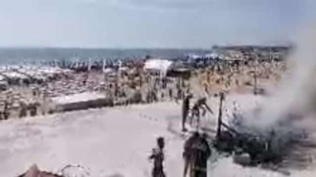 Doua rulote s-au facut scrum pe plaja din Eforie Nord. Fumul gros s-a ridicat la sute de metri in atmosfera VIDEO