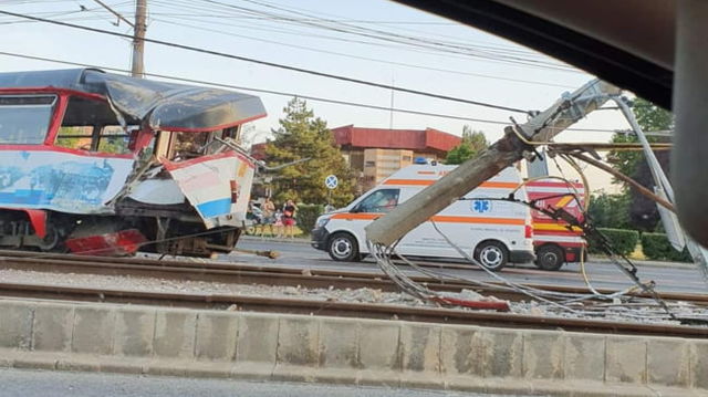 Un tramvai a deraiat in Iasi. Doua persoane ar fi fost ranite de vagonul care a sarit de pe sine VIDEO