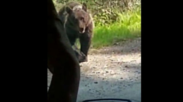 Copii in excursie la Vidraru intalnesc ursul in mijlocul drumului. Entuziasm general in autocarul care-i transporta VIDEO