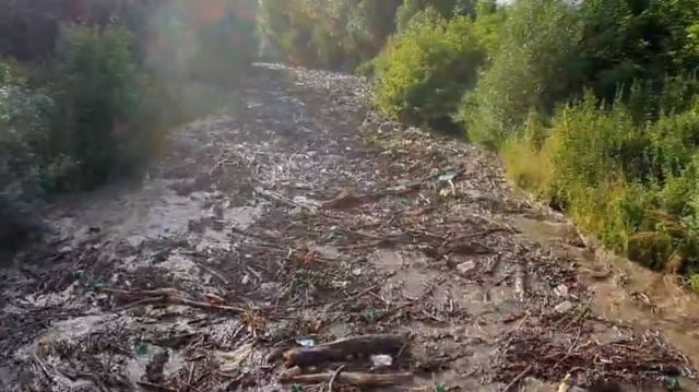 Viitura uriasa pe un rau din Apuseni. Imagini spectaculoase cu mii de busteni dusi de ape VIDEO
