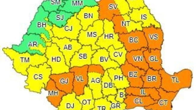 Noua avertizare meteo. Ploi torentiale, vijelii si grindina in 13 judete. Aproape toata tara se afla sub Cod galben