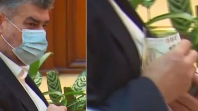 Marcel Ciolacu, surprins din nou cu banii zburati din sacou. Mai multe bancnote de 200 de lei i-au sarit cand isi cauta cartela de vot