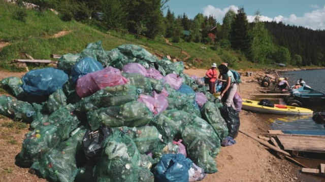 Dezastrul de pe lacul Belis din Apuseni. Peste 120 de voluntari au adunat tone de deseuri. S-au gasit gunoaie aruncate in urma cu 40 de ani