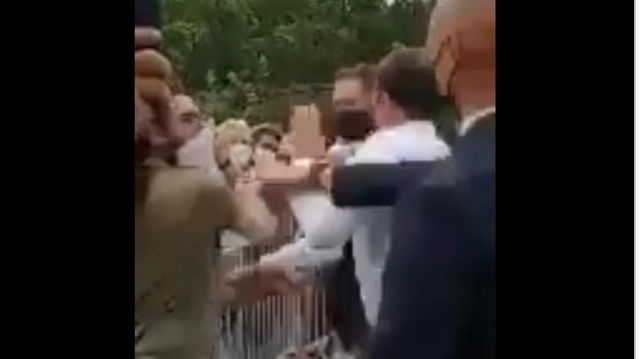 Emmanuel Macron, palmuit in timpul unei vizite oficiale. Doua persoane au fost retinute VIDEO