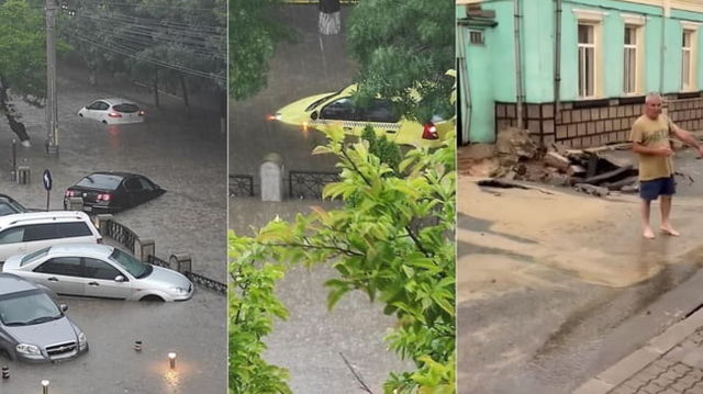 O ploaie torentiala a inghitit zeci de masini in Craiova. O strada intreaga plina de case s-a surpat VIDEO