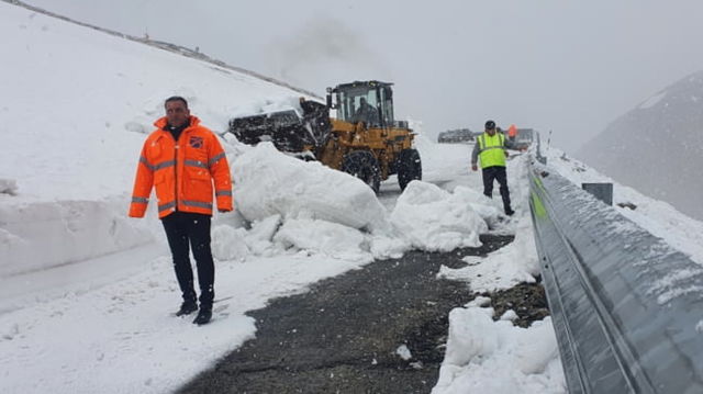 Drumul aflat la cea mai mare altitudine din Romania fotografiat la sfarsitul lunii mai. Muntii de zapada au peste 4 metri inaltime