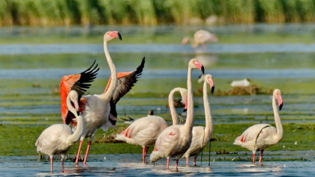 Pasarile flamingo si-au luat zborul din Delta Dunarii dupa ce au fost haituite de turisti cu barci sau drone care voiau sa le fotografieze