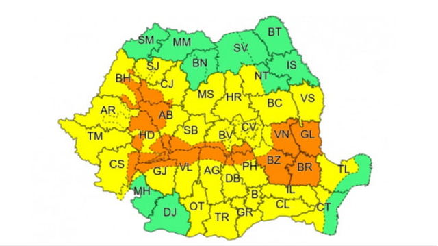 Ploi abundente in Romania. 17 judete au intrat sub avertizare de cod portocaliu: pericol extrem de inundatii