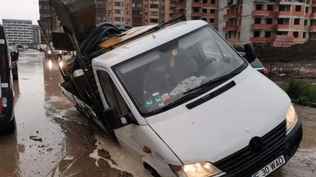 Dezastru in Chiajna, principalul "dormitor" al Bucurestiului. Un drum surpat inghite mai multe masini, strazi inundate dupa o ploaie moderata FOTO VIDEO