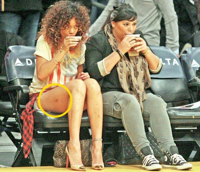 Rihanna, vânătă şi obosită