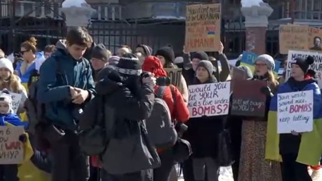 Ambasada Rusiei din București, pichetată de refugiați ucraineni la 3 ani de la începerea războiului