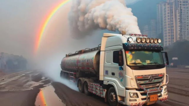 Autoritățile din China au implementat o metodă inovatoare pentru a combate poluarea: camionul generator de curcubeie