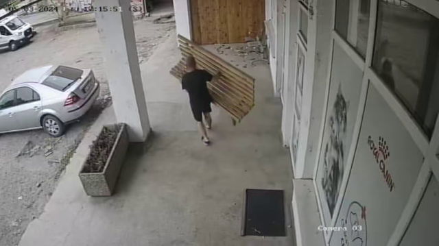 Imagini incredibile. Un clujean a fost surprins în timp ce fura o bancă în ajunul Paștelui VIDEO