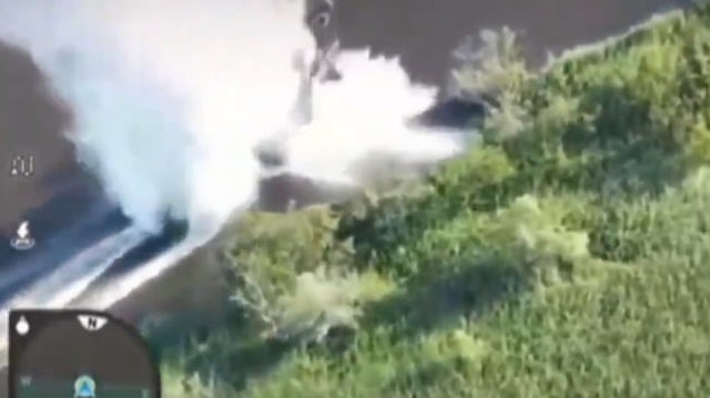 Momentul în care o barcă de asalt plină cu soldați ruși este spulberată de o mină pe fluviul Nipru VIDEO