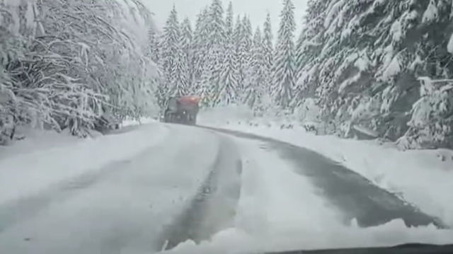 Ninge ca în miez de iarnă! Drumarii au scos din nou utilajele, stratul de zăpadă măsoară 15 centimetri VIDEO