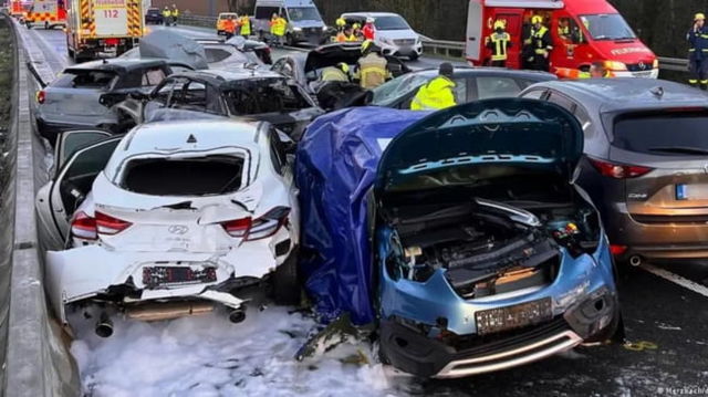 Carambol uriaș, cu 40 de mașini implicate, pe o autostradă din Germania. Zeci de răniți și doi morți