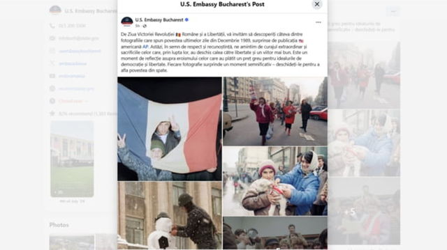 Imagini inedite cu bucuria românilor după căderea lui Ceaușescu, publicate de ambasada SUA. „Ne amintim de curajul extraordinar și sacrificiile celor care au deschis calea către libertate”