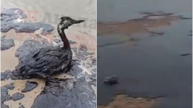 Imagini teribile cu plajele din Rusia, după ce două petroliere rusești s-au scufundat în zona Strâmtorii Kerci. Păsări năclăite cu petrol au fost găsite agonizând VIDEO