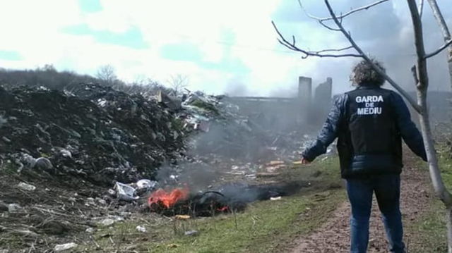 Interventie in forta a Garzii de Mediu la firme care depoziteaza si ard ilegal deseuri. Operatiunea, supravegheata din elicopter