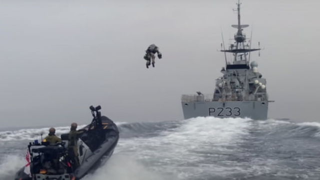 Zborul de "Iron Man" al militarilor britanici deasupra marii: Costumul minune care-i face sa plonjeze cu 120 de kilometri pe ora VIDEO