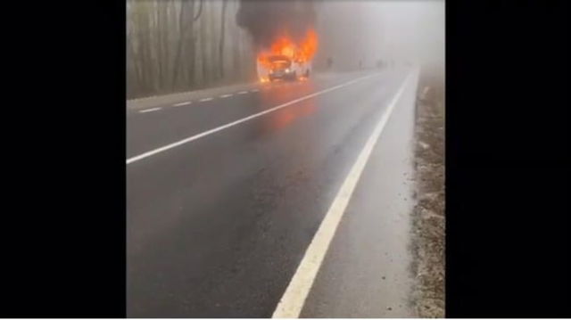 Un microbuz plin cu pasageri a luat foc. Calatorii au oprit masinile pentru a face rost de stingatoare VIDEO