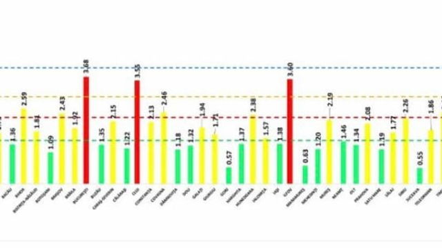 GRAFIC. Incidenta COVID-19 in Bucuresti scade la 3,68. Doar in doua judete incidenta depaseste 3 la mia de locuitori