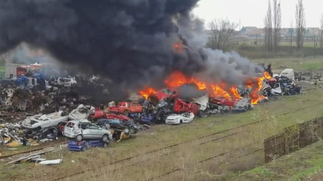 Incendiu de proportii in Hunedoara. Un nor urias de fum negru s-a ridicat deasupra localitatii Simeria VIDEO