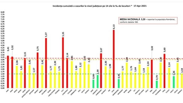 Ilfovul, pe primul loc la incidenta COVID-19. Alte 9 judete si Capitala raman in scenariul rosu GRAFIC