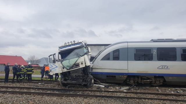 TIR lovit de doua trenuri in judetul Vaslui. O femeie a avut nevoie de ingrijiri medicale