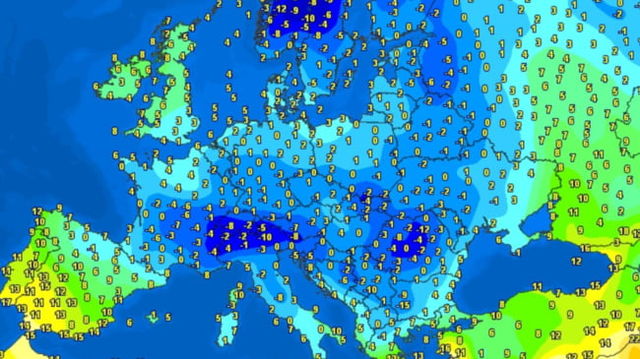 Harta recordurilor negative de temperatura in Europa. Cel mai friguros loc de pe continent in dimineata zilei de 8 aprilie