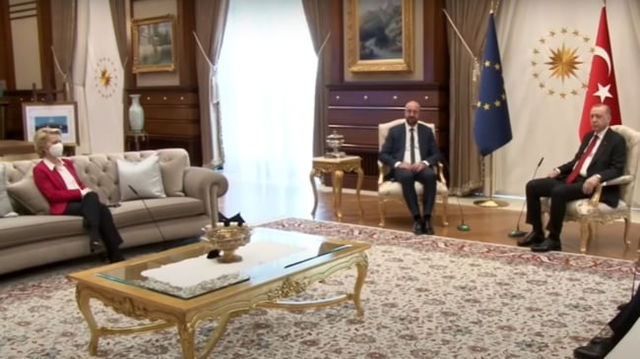 Moment stanjenitor la intalnirea presedintelui turc Erdogan cu liderii UE: Ursula von der Leyen, lasata fara scaun VIDEO