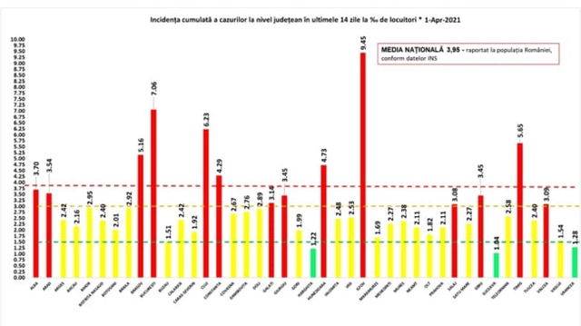 Incidenta record pentru Ilfov: Ultima raportare arata o rata a infectarilor de 9,45 de cazuri la mia de locuitori. Bucurestiul ramane peste 7 GRAFIC