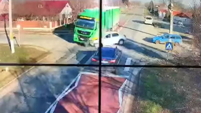 VIDEO Autoturism spulberat de TIR pe un drum din Slobozia. Momentul impactului, suprins de camerele de supraveghere