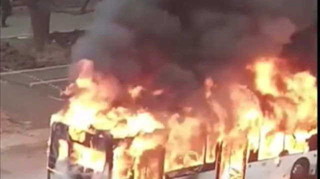 VIDEO Autobuz in flacari in Galati. Calatoreau in el 25 de oameni