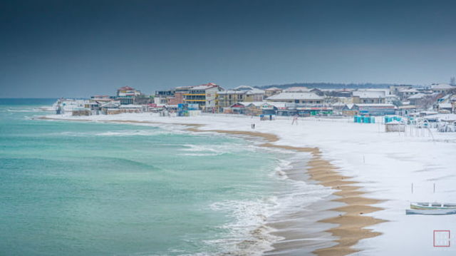 Imagini spectaculoase de la malul Marii Negre. Locuri in care vara abia mai ai loc sa arunci un ac, acum sunt pustii si acoperite de zapada