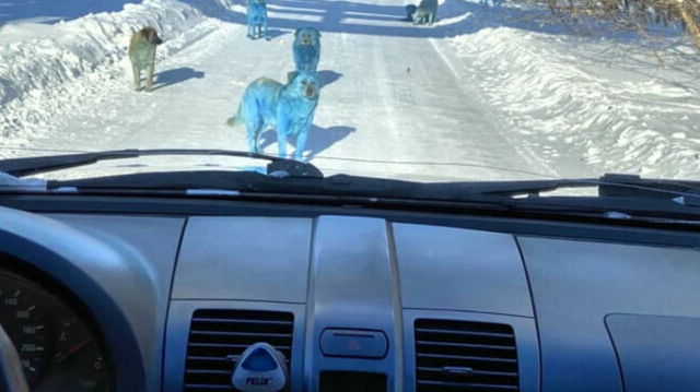 Cainii albastri, fotografiati intr-un sat din Rusia. Cum au ajuns asa ciudatele animale