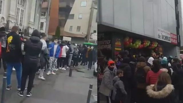 Coada de sute de persoane si aglomeratie la deschiderea unui restaurant care ofera burgeri gratis, in centrul Capitalei - VIDEO