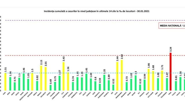 GRAFIC Incidenta cazurilor de COVID: 30 de judete sunt in zona verde. Timis, singurul judet in scenariul rosu