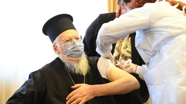 Arhiepiscopul Constantinopolului s-a vaccinat anti-COVID la 80 de ani: "Este inacceptabil, in fata atator victime, sa ai oameni care neaga realitatea pandemiei"