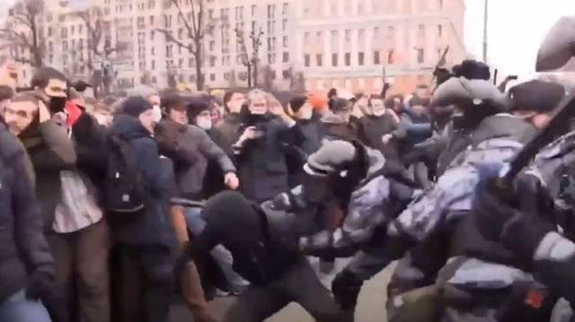 VIDEO Imagine tulburatoare la protestele din Rusia: un manifestat se bate, cu pumnii goi, cu cinci jandarmi inarmati. Cum a fost salvat de multime