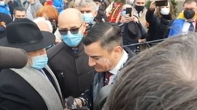 VIDEO Incidente la Iasi, de Ziua Principatelor: Primarul Mihai Chirica, stropit cu iaurt la protestul din Piata Unirii