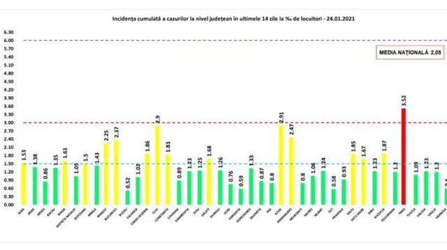 GRAFIC Incidenta in Bucuresti este in scadere, dupa raportarea a 340 de cazuri noi. Timisul, singurul judet ramas in zona rosie