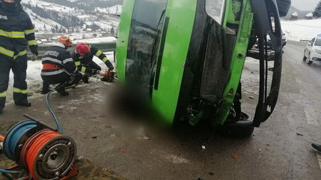 FOTO Un microbuz s-a rasturnat in judetul Suceava. Doua persoane au murit