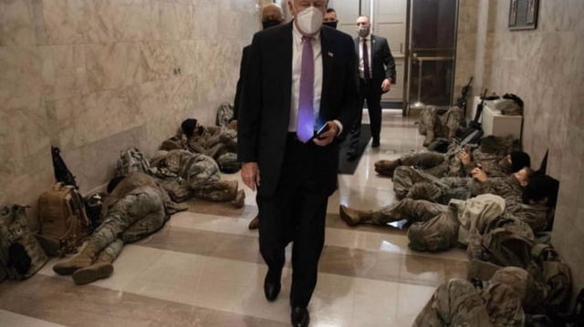 FOTO Imagini ireale de la Capitoliu. Congresmeni americani printre militari care dorm cu armele sprijinite de pereti