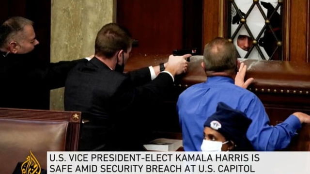 VIDEO O femeie a fost impuscata in interiorul Capitoliului din SUA. Tanara este in stare critica. Momentul a fost surprins de un protestatar