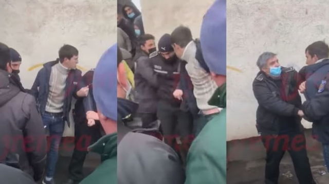 VIDEO Scandal monstru in Piata Centrala din Barlad. Politist lovit cu capul in gura de un tanar caruia i-a atras atentia ca nu poarta masca