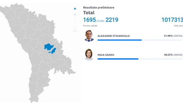 Primele rezultate ale alegerilor din Republica Moldova, la scurt timp după închiderea secțiilor: Statul în care Alexandr Stoianoglo are 0 voturi