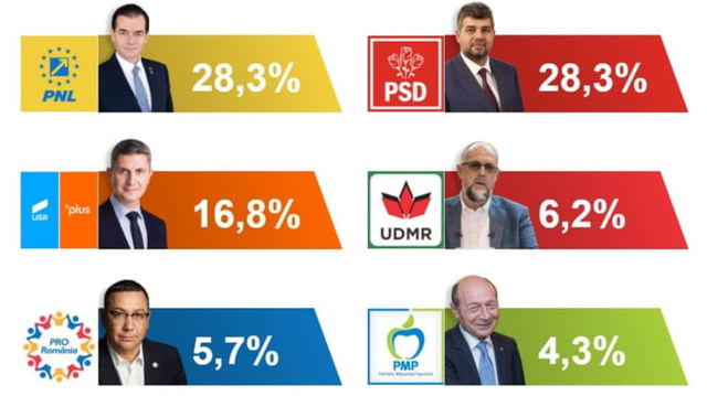 EXIT-POLL SOCIOPOL: PNL si PSD - 28%. Cat au obtinut USR-PLUS, AUR, Pro Romania si PMP