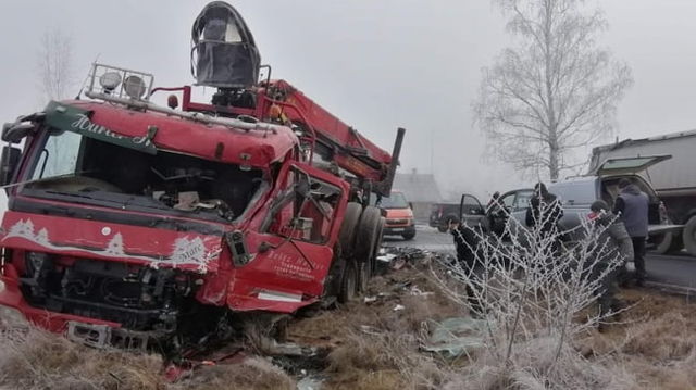 FOTO Accident rutier extrem de grav in Harghita. Doua autocamioane s-au ciocnit frontal, iar unul dintre soferi a murit