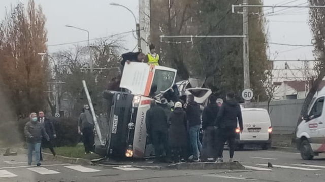 VIDEO Accident grav in Capitala: o ambulanta s-a rasturnat dupa impactul cu un bolid BMW